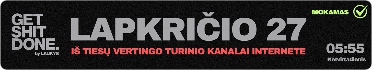Šiandienos naujienlaiškis skirtas tiems mokantiems prenumeratoriams, kurie prašėt papildyti kažkurio pirmadienio ANTI-BRAINROT naujienlaiškio sąrašus, Instagramo ir kitų platformų profiliais:
